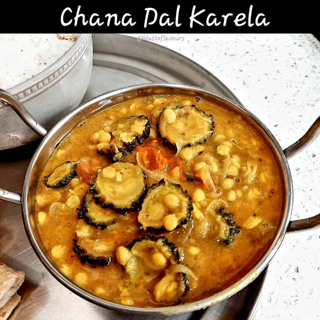 Chana Dal Karela is a combination of cooked split Bengal gram and crisp fried bitter gourd. Both ingredients are versatile and absorb each other’s flavors. When cooked together, karela feels less bitter because of the slightly sweet and earthy flavor of chana dal. A unique dish to try: