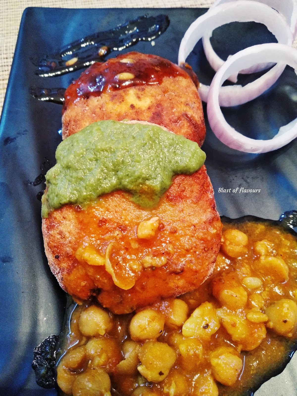 The variety of chaat is endless but today I planned to make aalu tikki chaat as my evening snacks. As the aalu tikki is relished with different chutneys but I served this with chana also.I had some chana sabji left from my lunch. The combination of aalu tikki and chana became incredible