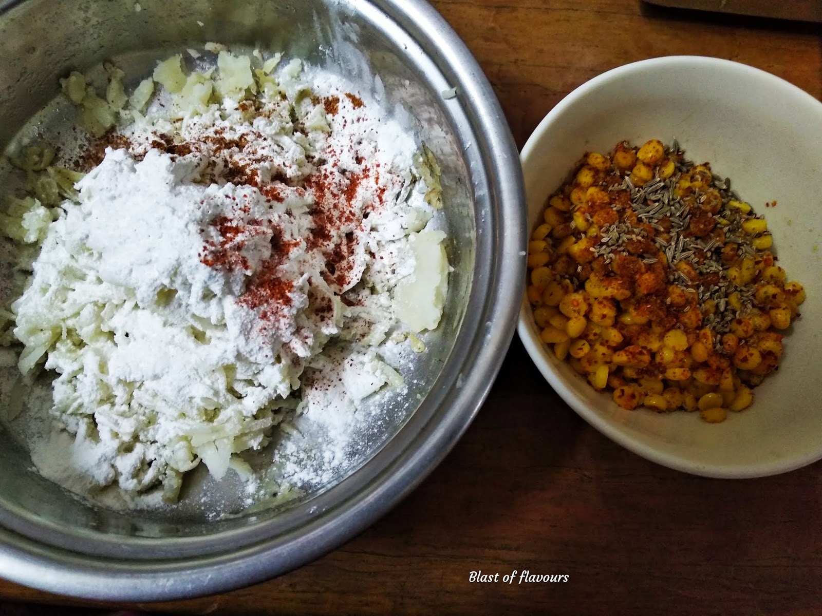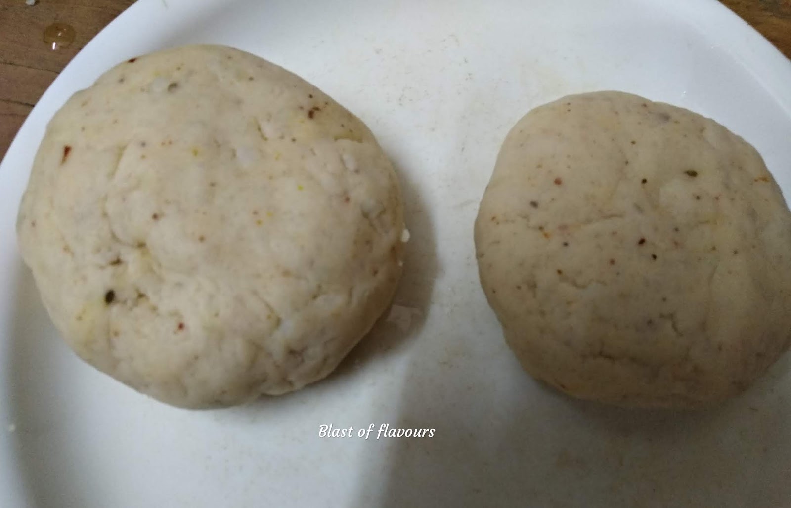 Add cornflour, and 1 tsp of salt and powdered spices. Knead potatoes well