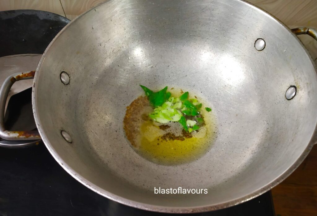 2- Next, add mustard seeds followed by curry leaves. Allow them to crackle