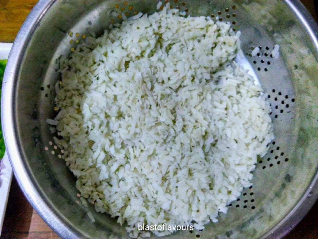 1 – Rinse poha 2-3 times in a colander and allow it to stay there for 30 minutes