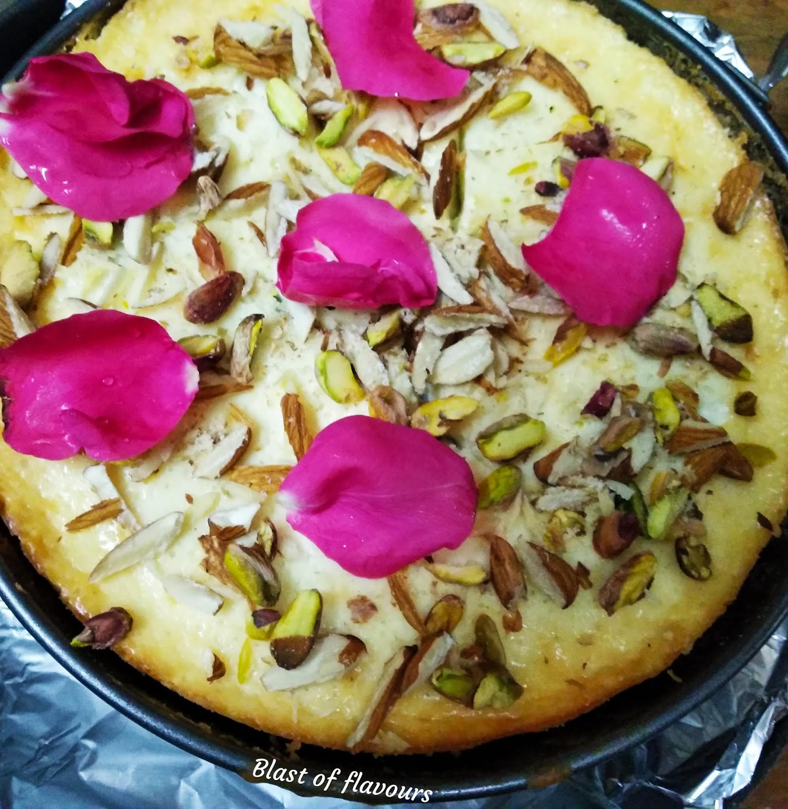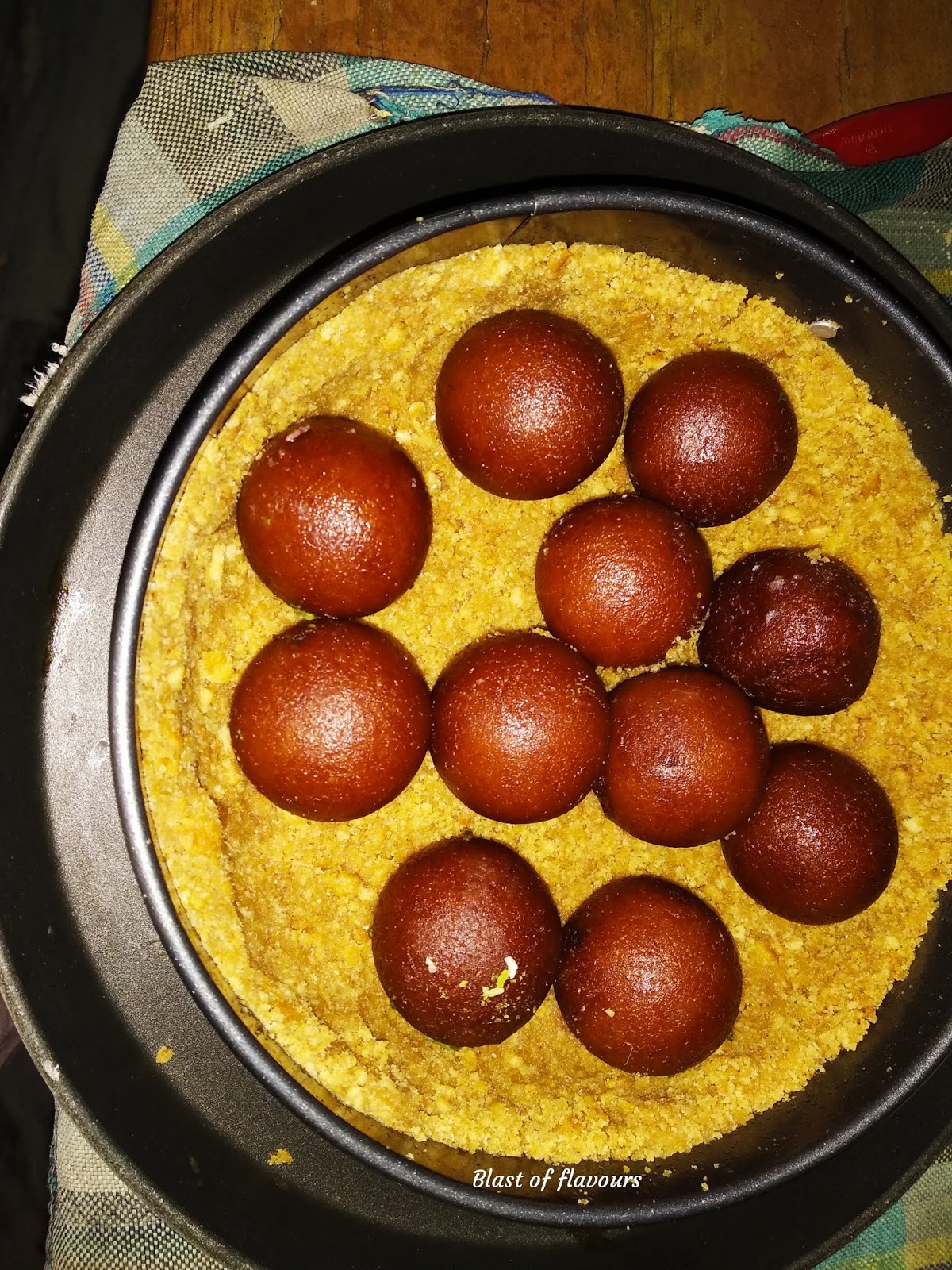 This is a fusion cheesecake in which I have tried to make the filling by mixing the two most loved flavours from two different cuisines; one is the NewYork cheesecake and the second is the most favourite sweet of all Indians, the Gulab Jamun. Both the desserts are milk based and have melt in mouth consistency.