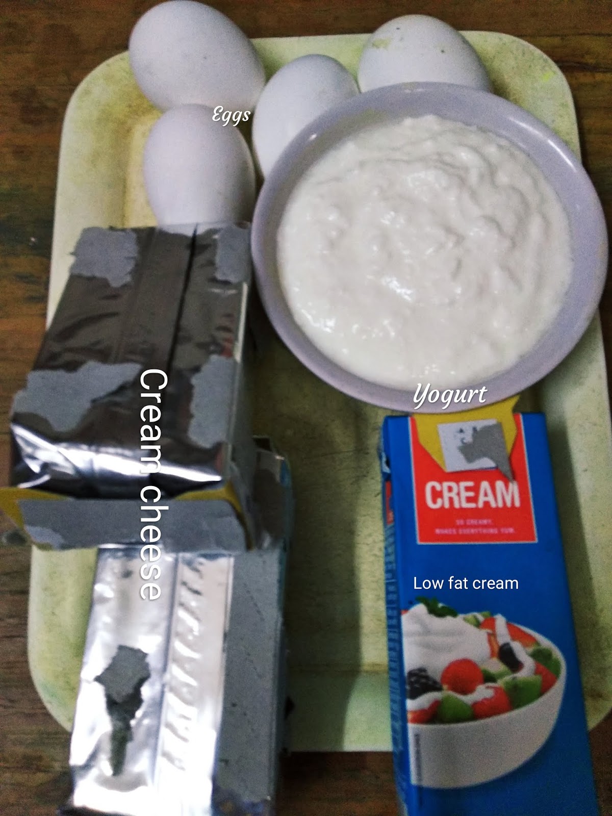 3- whisk cream cheese, caster sugar, eggs and heavy cream till smooth-creamy mix with the help of an electric whisk