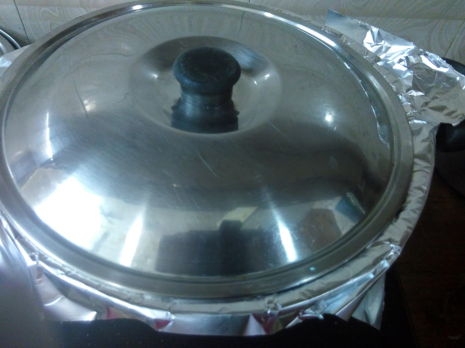 Cover the pan with aluminium foil and then the lid